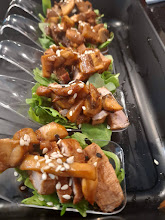 Varkenshaas (keuze uit sesam soja, ketjap, champignons, knoflook, lemongras) € 2.75
