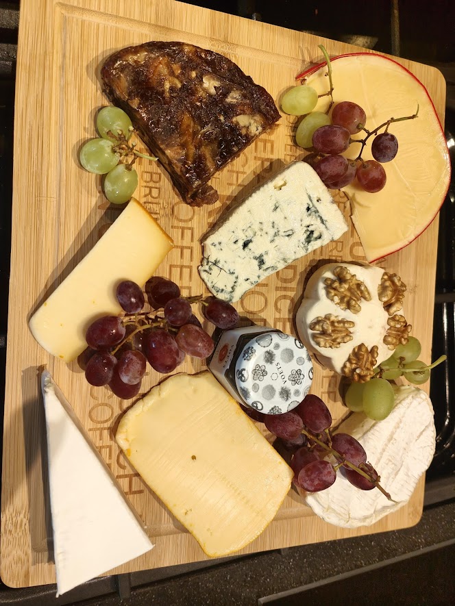 bestaande uit diverse soorten buitenlandse en Hollandse harde en zachte kazen , noten, enz.